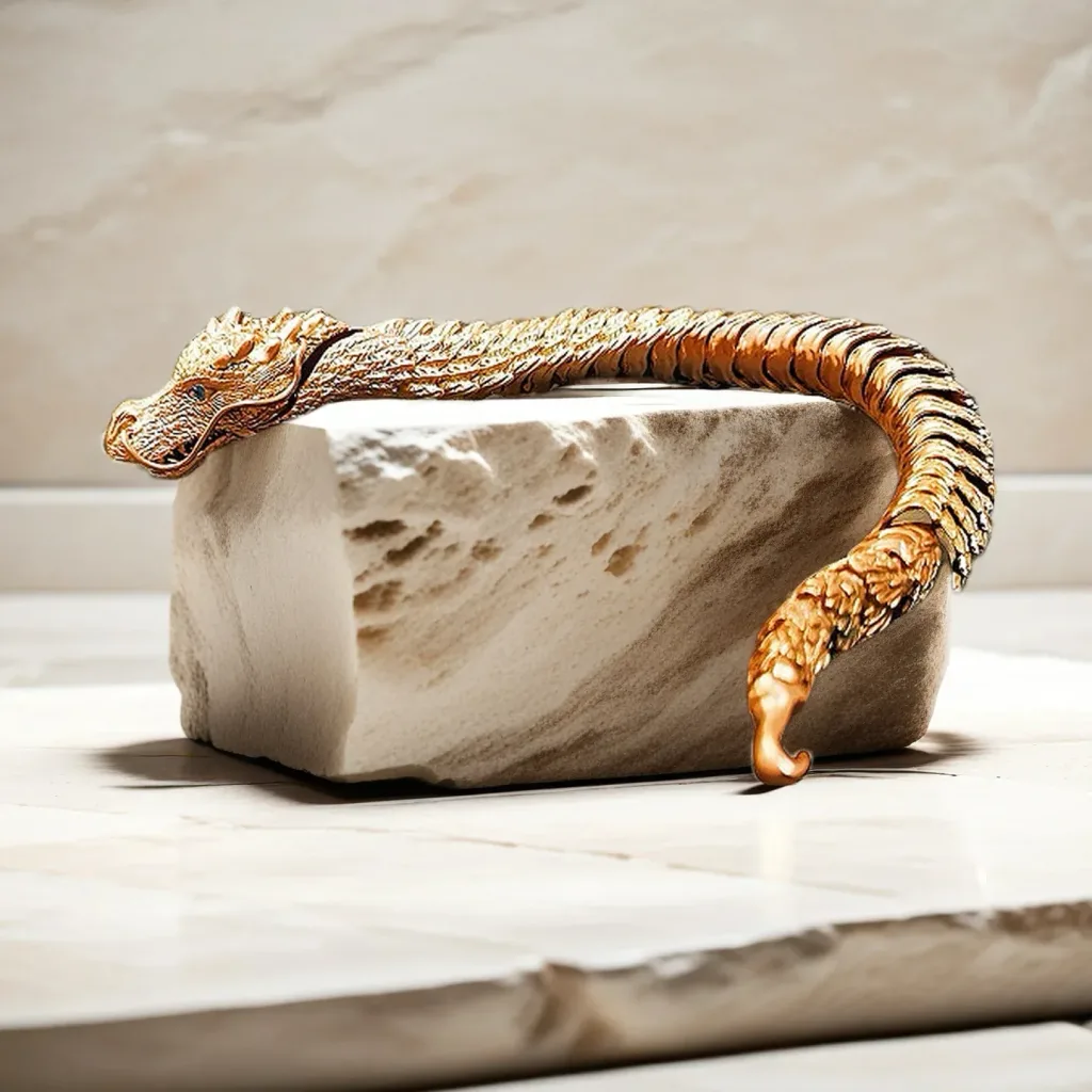 Each dragon scale is meticulously sculpted using precision micro-carving technology, capturing the mythical creature’s power and grace in wearable form. The articulated links move fluidly with your wrist, ensuring ultimate comfort.